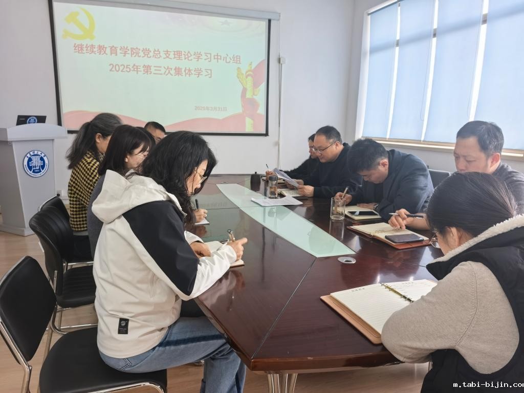 3月31日上午,继续教育学院党总支理论学习中心组围绕“深入学习贯彻2025年全国“两会”精神,扎实推动学院各项工作落实,推进继续教育学院高质量发展”开展专题学习。党总支书记孙川三主持会议,理论学习中心组全体成员参加。